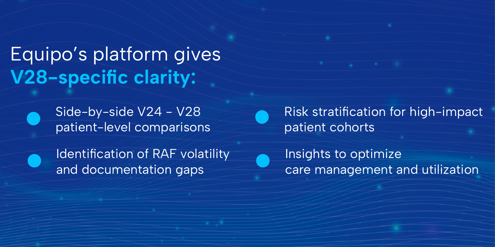 Equipo’s V28-focused analytics, population stratification, and V24–V28 comparison capabilities equip teams with the precision needed to succeed in this new environment. With the right insights and early action, 2026 becomes not a year of disruption, but a year of strategic clarity, one that supports better decisions, stronger operations, and improved care for the patients who rely on them.